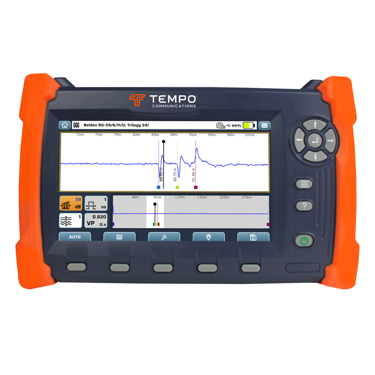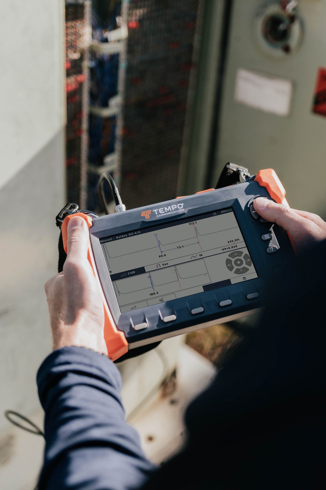 Рефлектометр для мідного кабелю TEMPO CableScout TV220E — сучасний TDR для точного тестування та діагностики кабельних ліній у мережах зв’язку та кабельного ТБ.
